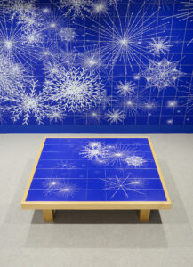 奈義町現代美術館にサンドラ・シントさんデザインの青い壁面(談話室)とテーブルの製作協力をさせていただきました。